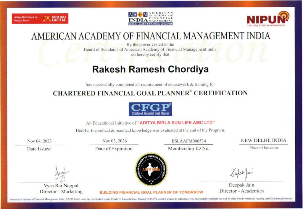 We as RM Financial Edge incorporated in the year 2006 and at present having 1200+ satisfied clients. We will help clients to achieve their Financial goals with effective and smart investment planning. We are certified Wealth Manager, Mutual Fund and Insurance consultants recognized by the NSE National Stock Exchange, AMFI (Association of Mutual Fund of India) and also insurance advisors recognised by the IRDAI (Insurance Regulatory and Development Authority of India). We offer comprehensive financial advisory services, having highly qualified and experienced team of financial advisors. We use our complete knowledge of insurance, tax laws, and mutual fund investments in order to suggest investment options to the clients, as per their long-term and short-term goals. Our core purpose is to provide fast track financial solutions & thereby make people enjoy a secured retirement life.